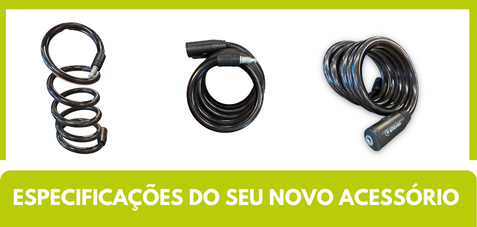 - Calcular freteCadeado espiral grosso 1,5M X 12MM Elleven Feito de aço super resistente a alicates e qualquer outro tipo de ferramenta, pratico para o dia a dia com suporte para transporte no selim da bike, flexível com 2 chaves.